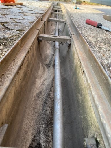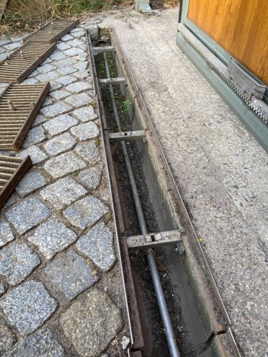 Reinigung der Abflussrinne um Verstopfungen zu vermeiden