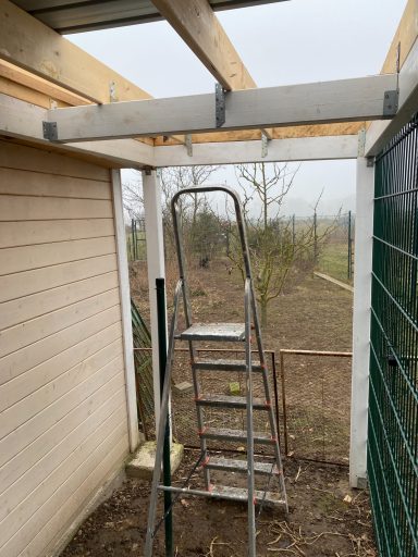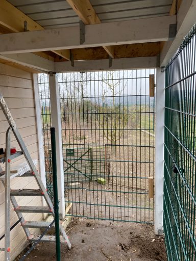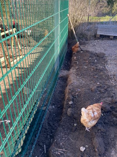 Hühnerstallung: Dach eingedeckt und Tür eingebunden.